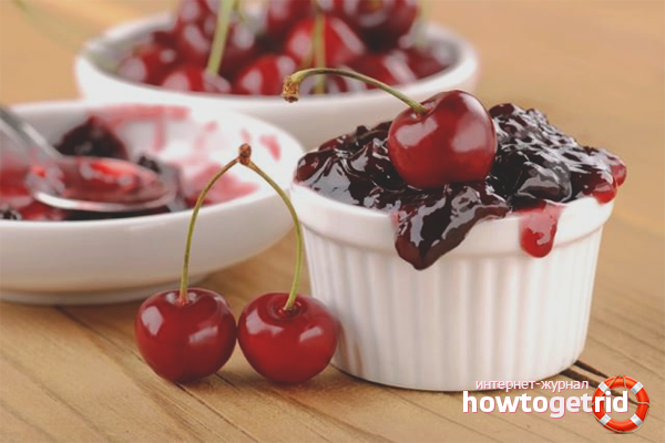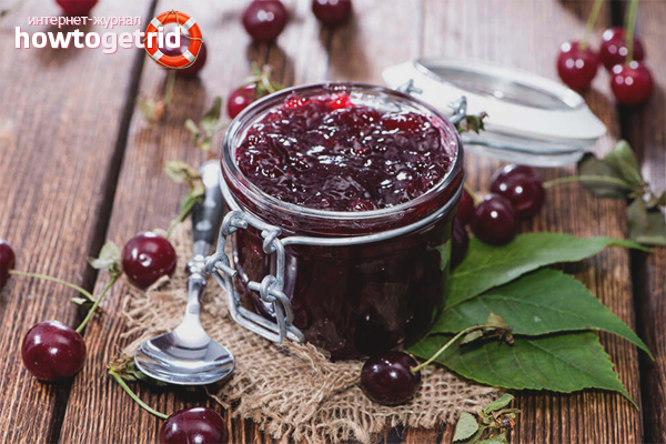 La confiture de cerise a un arrière-goût acidulé et un arôme indescriptible. En plus des caractéristiques évidentes, les cerises contiennent une grande quantité de potassium, magnésium, cuivre, fer, vitamines de divers groupes (A, C, B1, PP, etc.). Grâce à cela, la délicatesse est très populaire dans de nombreuses familles. La confiture est utilisée pour faire des tartes et des desserts fourrés, et est également utilisée comme collation indépendante pour le thé. Les femmes au foyer expérimentées ont sorti de délicieuses recettes dans lesquelles les cerises sont combinées avec des framboises, des pommes, des canneberges et même du chocolat.