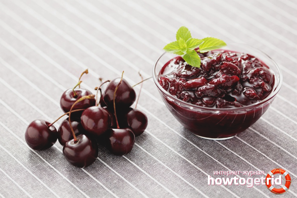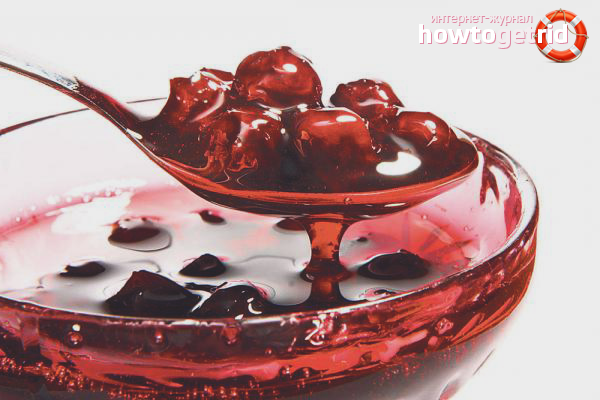 - Ragoût de confiture pendant un quart d'heure. Pour rendre la confiture plus épaisse, vous pouvez prendre une pause de 5 heures (facultatif) entre les cerises bouillantes et verser la gélatine gonflée.