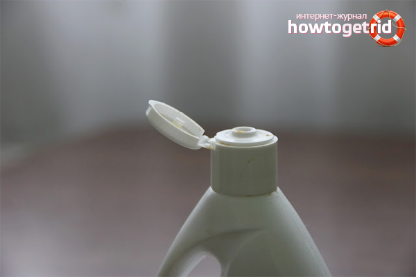 Pour préparer la solution, vous devez choisir un gel naturel sans colorants. Diluez une demi-bouteille de liquide vaisselle dans 2,5 litres d'eau, remuez bien avec vos mains pour que la mousse monte. Mettez les vêtements dans le récipient, attendez 10-13 heures. À la fin de la période, frottez le produit avec du savon de blanchiment, lavez-le dans la machine. Il vous sera difficile d'enlever la mousse avec vos mains, le savon la supprime. A la fin de toutes les manipulations, séchez les choses à l'air frais.