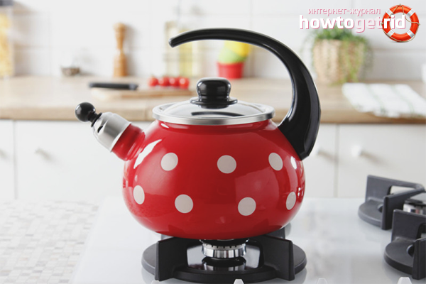- La plupart des bouilloires émaillées ont un couvercle lâche. En conséquence, après avoir fait bouillir de l'eau, elle peut simplement sauter, les brûlures de vapeur ne peuvent pas être évitées. Par conséquent, abstenez-vous d'acquérir de tels mannequins ou de les utiliser fréquemment.