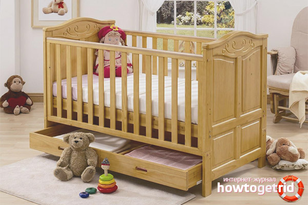 - Parmi les lits classiques, vous pouvez également trouver des modèles plus chers avec des fonctions supplémentaires sous forme de tiroirs. Dans de tels compartiments, vous pouvez mettre la literie, les affaires de bébé et divers accessoires nécessaires à portée de main. En outre, les modèles plus chers sont supprimés des parois latérales.