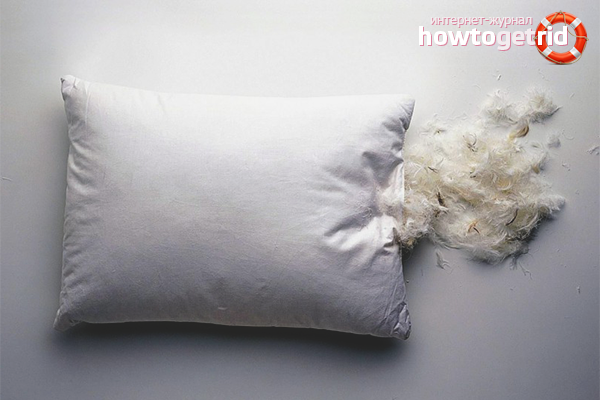 - Duvet / plume. Le type d'emballage le plus courant, qui absorbe rapidement l'humidité, retient la chaleur. La douceur de l'attribut donne le duvet et la rigidité - la plume. Cette option ne convient pas aux personnes allergiques, car elle provoque des démangeaisons, des éternuements et d'autres symptômes d'intolérance aux peluches. Les oreillers appartiennent au passé car ils sont difficiles à nettoyer et sont des lieux de reproduction de parasites. Durée de conservation - 5 ans, un lavage est requis chaque année.
