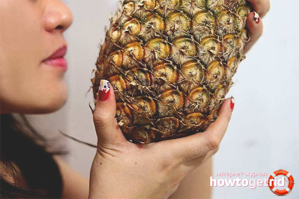 N'hésitez pas à renifler l'ananas. Même sans violer l'intégrité de la peau ou de la pulpe, le fruit mûr dégage un arôme caractéristique. Il doit être agréable et discret. Une odeur forte avec une odeur chimique et un grésillement dans le nez devraient vous décourager d'acheter. Le manque presque complet d'arôme devrait également être source de préoccupation saine.
