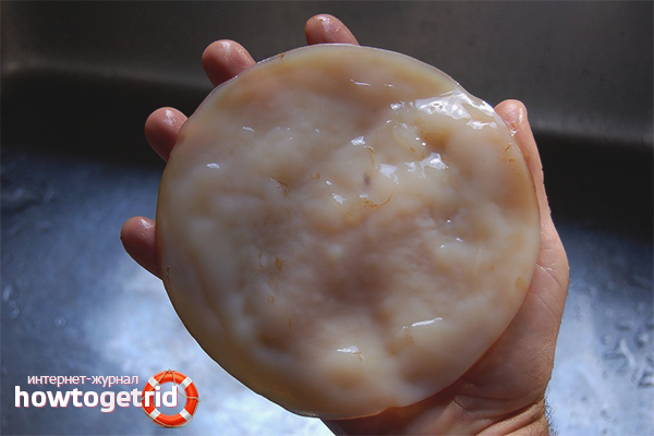 Toutes les deux semaines, il est nécessaire de baigner le médusomycète en le retirant soigneusement de la boîte. Rincez doucement à l'eau tiède, en faisant attention de ne pas vous blesser. Laisser ensuite quelques minutes sur une assiette pour respirer l'air. Filtrez le contenu du pot et versez dans un récipient propre. Laver le pot et y retourner le champignon.