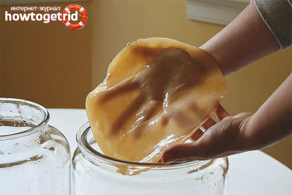 Au stade final, le liquide devient plus léger et une méduse multicouche se développe à sa surface. Il est transféré dans des plats propres avec du thé sucré puis selon le schéma habituel.