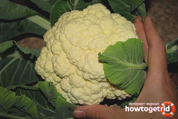 Ne soyez jamais catégoriquement en retard avec la récolte. Les pédoncules se développent rapidement en branches distinctes lorsqu'ils sont envahis. Ensuite, ils commencent à grandir dans des directions différentes et dépassent comme un fouet. Les têtes sont coupées lorsqu'elles atteignent une taille caractéristique pour la variété. Ou un peu plus tôt. Quiconque a déjà vu du chou-fleur ne sera certainement pas en retard. Au premier signe de prolifération, un besoin urgent de prendre la récolte.