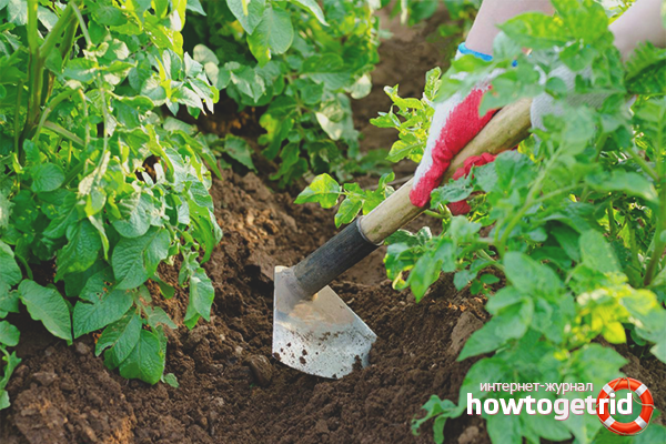 Au printemps, immédiatement après la fonte des neiges, vous devez enterrer la fraise. Cela cassera la croûte supérieure et permettra aux mauvaises herbes de pousser activement. Jusqu'à ce que les pommes de terre soient plantées, elles peuvent être coupées ou altérées. Ainsi, les mauvaises herbes n'interféreront pas avec les semis.