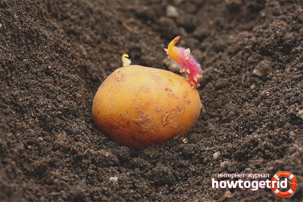 Soit dit en passant, la profondeur optimale de placement des graines ne dépasse pas 15 cm, sinon vous devrez attendre très longtemps les semis. Avec la taille des tubercules légèrement plus grande que l'œuf de poule par centièmes (20 lits de cinq mètres), vous n'aurez besoin que de 5 à 6 seaux de matériel de plantation.
