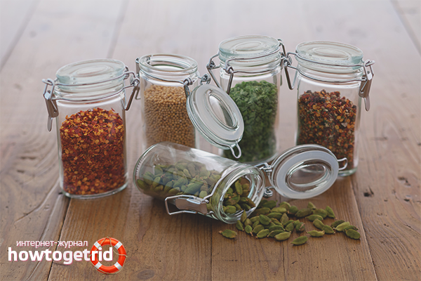 Astuce. Dans des bocaux percés, ne versez pas d'assaisonnements directement dans la casserole ou dans votre assiette. La vapeur provenant de la nourriture fera son affaire insidieuse. Prenez une cuillère à soupe, versez-y les épices, et alors seulement - dans la nourriture. Ainsi, vous serez sûr que l'humidité n'a pas pénétré dans le récipient. Oui, et le dosage est plus facile.
