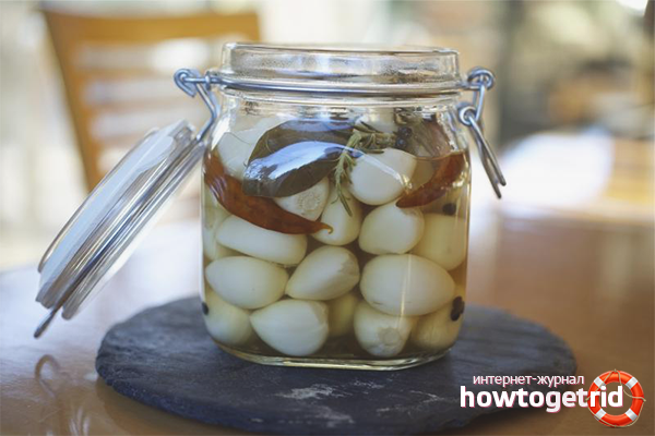 - Laisser dans un endroit chaud pour insister, puis boucher avec des couvercles (après environ 12 heures). Maintenant, mettez l'ail mariné dans la cave, commencez à manger après 1,5 mois.