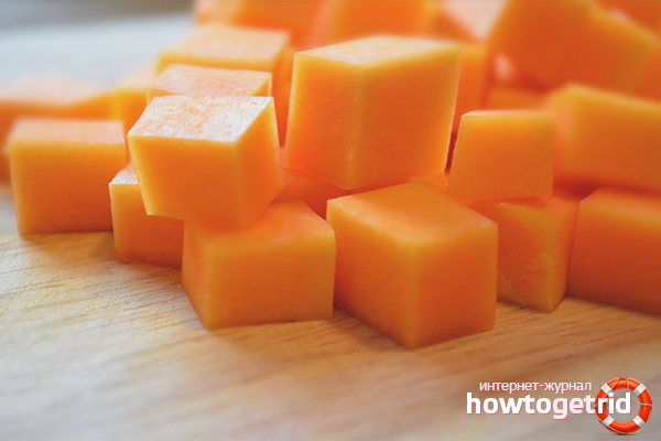 - Pour congeler une citrouille en cubes, vous devez utiliser uniquement des légumes frais. La tranche qui se trouve dans le réfrigérateur ne fonctionnera pas. Prenez le fruit entier, lavez et hachez.