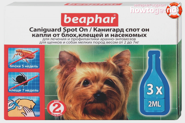 - De nombreux éleveurs de chiens préfèrent les gouttes sous forme de médicaments, ce qui n'est pas surprenant. Une composition efficace donne une garantie à 100%. Pour traiter un animal de compagnie, vous devez acheter une composition en pipettes. Ensuite, la fourrure se prolonge au garrot, au cou et derrière les oreilles.