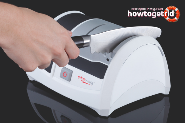 La façon la plus simple d'aiguiser un couteau en céramique - Il s'agit d'utiliser une meuleuse électrique spéciale, qui est vendue au même endroit que les couteaux. Dans ce cas, vous devez savoir quel type d'affûtage pour un couteau particulier est requis - unilatéral ou bilatéral. Conformément à la méthode requise, il est nécessaire de choisir un mode. Dans de tels appareils, tous les angles nécessaires au traitement des lames de couteau sont ajustés.