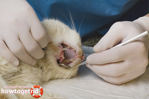 Dans la clinique vétérinaire, un premier examen est effectué, révélant le degré de lésion dentaire. Au stade initial, le nitrate d'argent et le fluorure de sodium sont utilisés.Ils bloquent les processus destructeurs, désinfectent et recouvrent l'émail d'un film mince. Si les mesures n'ont pas l'effet souhaité ou si les processus sont allés trop loin, la dent devra être retirée. Les procédures sont effectuées sous anesthésie et prennent un peu de temps. Le traitement ultérieur comprend des médicaments de soutien, parfois une cure d'antibiotiques est nécessaire pour soulager l'inflammation des gencives. Un nouvel examen est nécessaire pour exclure les complications.