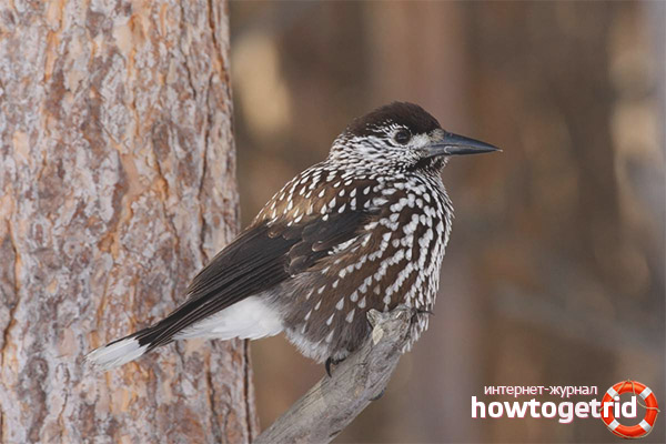 - Il n'est pas difficile de deviner comment les oiseaux ont obtenu leur nom. Les individus considérés ne peuvent tout simplement pas imaginer leur vie sans noix de pin. Les oiseaux à plumes sans aucun problème fissurent la coquille avec des mouvements de bec habiles. De plus, les oiseaux ne sont pas opposés à se régaler de glands, de noisettes, de baies et de graines de hêtre.