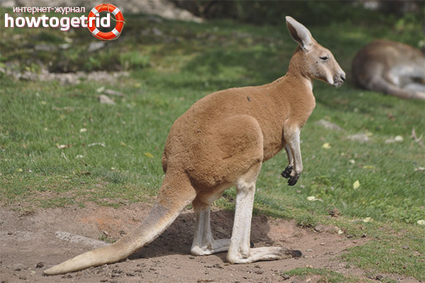- Il existe plusieurs variétés d'individus discutées, les caractéristiques générales des animaux en dépendent directement. En moyenne, en poids de la coque, ils sont d'environ 20 à 100 kg. avec une longueur de tronc de 25-150 cm.Un rôle distinct est attribué à la queue, elle sert d'équilibrage et mesure 45-100 cm de long.Les plus grands représentants de la famille vivent en Australie, ils sont rouges et grands. Des kangourous lourds vivent à l'est, ils sont appelés gris.