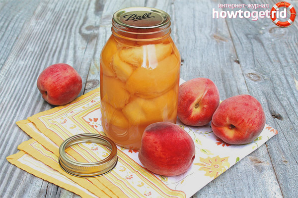 Les pêches sont aimées de tous, sans exception, elles sont donc consommées partout et récoltées pour une conservation à long terme. Très souvent, sur la base des fruits présentés, des boissons sont préparées qui peuvent être ouvertes pendant la saison froide et pour plaire à toute la famille. Il n'y a pas trop de variations de compote, mais elles diffèrent toutes par leur simplicité et une liste minimale de composants.