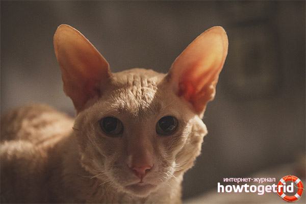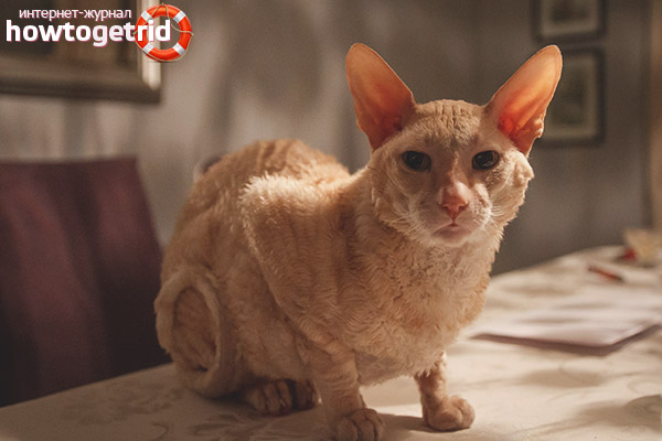 Vous pouvez considérer un grand nombre de races de chats, mais une telle grâce et grâce ne peuvent pas être trouvées. Ces chats sont dotés par la nature d'une oreille particulièrement vive. Ils sont capables d'entendre ce que l'oreille humaine n'est pas sujette à perception. Le chat Cornish Rex a des yeux très expressifs. Si vous ajoutez des oreilles luxueuses à cela, alors vous commencez involontairement à penser qu'un elfe de fée a visité la maison.