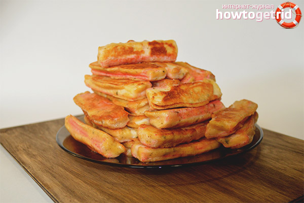 Tout le monde aime cette recette, alors assurez-vous de la mettre en service. Les bâtonnets de crabe sont trempés dans la pâte au fromage et frits. Si vous souhaitez améliorer la variation, déroulez les abats et farcissez-les de garniture à l'ail et au fromage. Plongez ensuite dans la pâte au fromage.