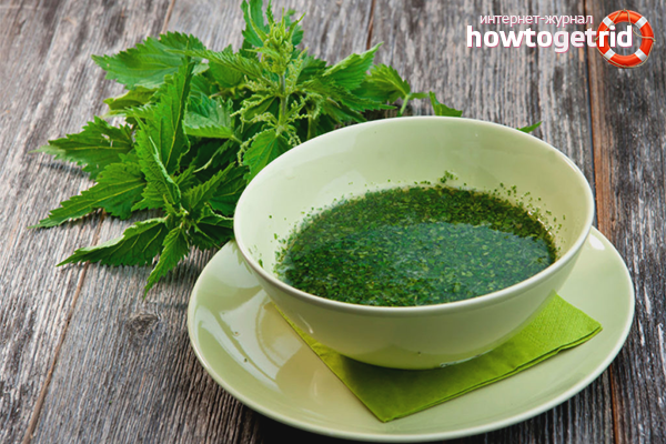 - Lavez 2 grappes de feuilles d'ortie fraîches, placez-les dans un mélangeur et faites de la bouillie. Versez 5 g. boire du soda, 10 gr. sel de mer ou de table, seigle son de seigle.