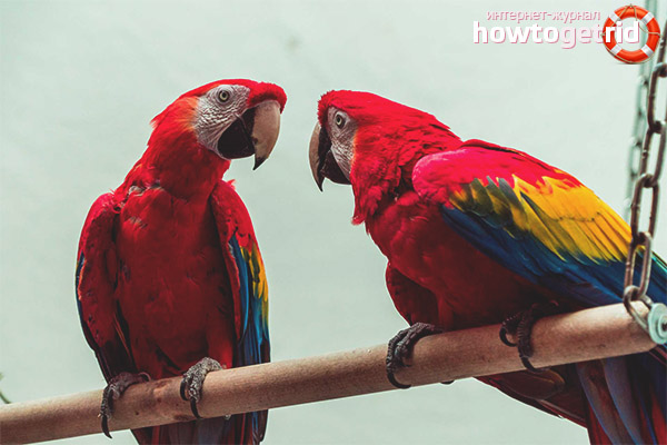 Parfois, les aras jurent. Ainsi, une femme au milieu d'une bataille peut chasser un homme des branches d'arbres. Bien sûr, c'est un effet temporaire, puis les oiseaux se réconcilient et se caressent.