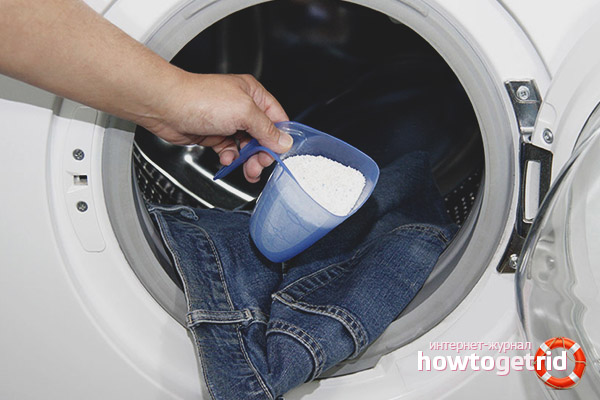 - Envoyez le jean à l'intérieur, souvenez-vous avec vos mains et soulevez de haut en bas pendant quelques minutes. Laisser agir encore une demi-heure, puis procéder au lavage.