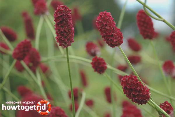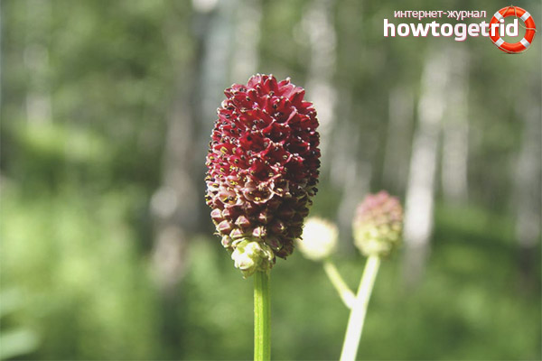 Cette plante est une plante vivace et appartient à la famille des rosacées. Il pousse jusqu'à 80, moins souvent jusqu'à 120 cm. Grâce au système racinaire bien développé, c'est la racine - le remède principal. La tige de l'hémorragie est longue et mince, ramifiée au sommet, a des feuilles basales qui diffèrent par une forme ressemblant à des plumes. Ils sont non appariés et à longue arche. Les fleurs sont rouges, mais presque foncées, car la plante appelle les têtes rouges ou noires. Ils poussent sur de longs pédicelles et sont collectés dans les têtes. La floraison a lieu en juin - août.