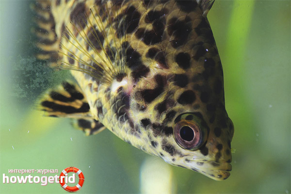 - Ne peuvent pas être appelés poissons agressifs, ils sont plutôt nocifs, n'acceptant pas les étrangers. En raison de l'instinct inhérent au prédateur, les léopards mangent de petits poissons. Par conséquent, en tant que quartier, de grands individus sont sélectionnés qui peuvent riposter.