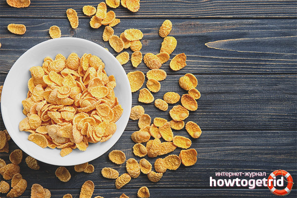 - Par conséquent, il convient de noter immédiatement que la consommation de flocons de maïs n'est pas la meilleure solution. Le problème est que le produit a une teneur calorique assez élevée. De plus, la composition contient de l'amidon et de nombreux autres additifs inutiles.