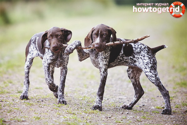 La grande énergie du chien rend les propriétaires plus mobiles, courent avec le Kurzhaar et proposent divers jeux de plein air. Mais comme cette chienne est constamment en quête d'aventure, il faudra entraîner ses commandes dès son plus jeune âge, et cela devrait être fait par l'un des membres de la famille que le chiot a reconnu comme le chef de la meute et est prêt à obéir.