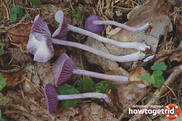La laque brillante et rapidement visible est un visiteur fréquent dans les bois. Ses chapeaux sont très clairement visibles sur les déchets forestiers et parmi la mousse verte, en particulier dans les endroits humides.En cherchant une laque d'améthyste dans la forêt, les cueilleurs de champignons inexpérimentés devraient apprendre à la distinguer des poisons et des parents apparentés.