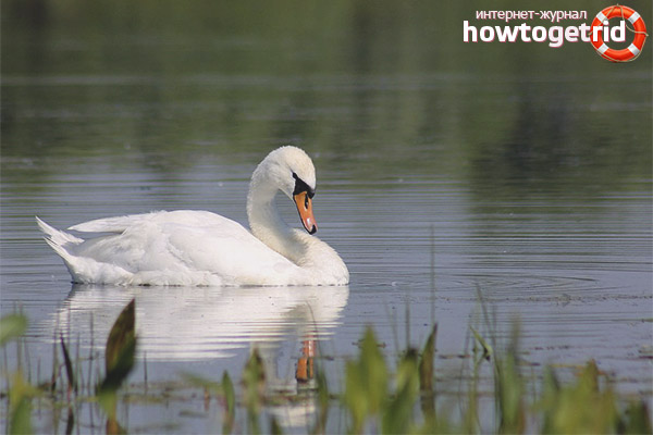 - Les essaims de muets appartiennent à la famille des oies et sont considérés comme les plus importants parmi les individus seblike. Un oiseau gracieux, grand et blanc agit comme un symbole de prospérité et de fidélité. À ce jour, on pense que le cygne muet est le plus grand oiseau qui vit dans l'immensité de notre patrie. Cela est dû à son poids, qui peut atteindre 15 kg.