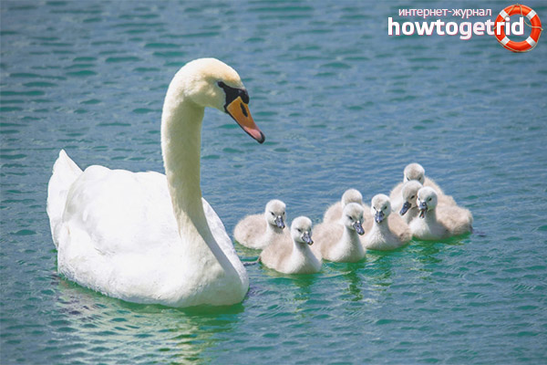 - En fait, d'excellents pères sortent de cygnes muets. Ils gardent la maçonnerie avec vigilance, tuant des renards avec leurs ailes puissantes. Les oiseaux sont extrêmement agressifs pendant la période de nidification, ils sont intrépides et altruistes.