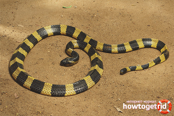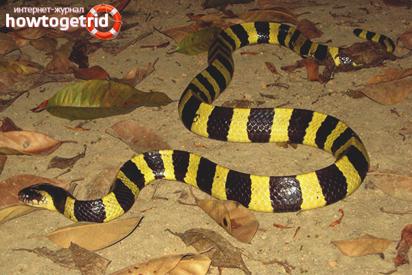 Tape krait est l'un des serpents les plus dangereux de la planète. Elle rampe dans la maison d'un homme et attaque la nuit. Krayt applique rapidement un grand nombre de piqûres et s'accroche fermement à la peau. Le poison du serpent est si dangereux que les grenouilles meurent quelques secondes après la morsure et les animaux plus gros - après 15 minutes. La mort humaine survient dans les 10 prochaines heures. 1 bouchée peut tuer environ 10 adultes.