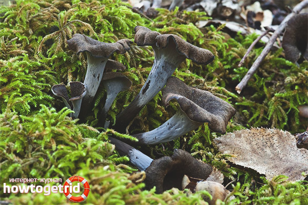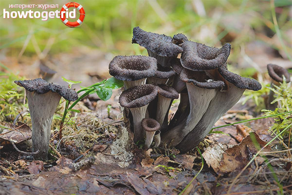 Un champignon sous le nom d'entonnoir en forme d'entonnoir pousse dans la forêt (il est souvent appelé corne noire, entonnoir en forme d'entonnoir, craterellus en forme de corne). Et il est mieux connu des cueilleurs de champignons comme le renard noir. En apparence, il justifie pleinement le nom - en effet, il est très similaire à un charbon de bois de couleur entonnoir debout sur une jambe avec un chapeau déchiré en petits chiffons (chez les jeunes champignons, les bords du chapeau sont entiers et pliés). Une telle couleur triste donne l'élément contenu dans le produit appelé mélanine.