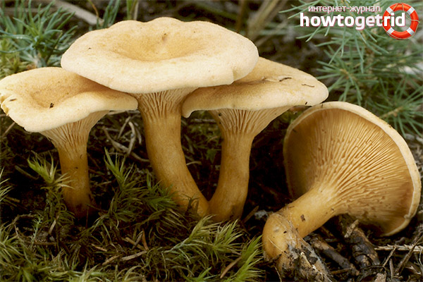 Dans un faux champignon, les plaques sont oblongues et descendent jusqu'à la tige, en chanterelles elles y passent en douceur. De plus, la jambe du champignon non comestible est beaucoup plus mince, avec un assombrissement notable plus près de la base, dans le présent, il est plus épais, plus uniforme, de la même couleur et se rétrécit progressivement vers le bas.