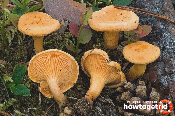 L'une des principales différences entre les fausses girolles et les vraies est la couleur. Chez les causeurs, il a une teinte orange vif ou rouge-orange. Le champignon comestible a une couleur jaune pâle, jaune-orange ou blanc-jaune, sans tons orange ou rouges évidents.