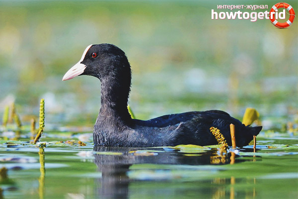 La foulque est une petite sauvagine de taille moyenne qui appartient à la famille des bergères. La plupart des habitants connaissent cette espèce sous le nom de lin. La foulque a obtenu son nom d'origine en raison de la tache coriace caractéristique située sur la partie frontale de la tête, sur laquelle la couverture de plumes est complètement absente.