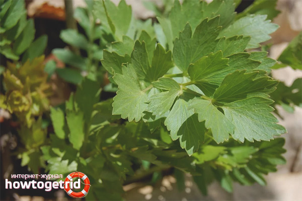 Les feuilles et les graines de la livèche sont également collectées. Ce processus commence après le début de la floraison. Les feuilles sont soigneusement arrachées, disposées à la maison sur du papier propre, de préférence sous un auvent. Il n'est pas nécessaire d'arracher complètement la plante du sol pour la préparation des feuilles ou de détruire la partie supérieure. Ensuite, en remerciement, la livèche présentera au moins cinq fois par saison une nouvelle récolte. La récolte ne doit commencer qu'après que la plante a commencé à fleurir ensemble ou immédiatement après la floraison. Le fait est que la récolte précoce ne contient pas encore toutes les propriétés nutritionnelles et médicinales.