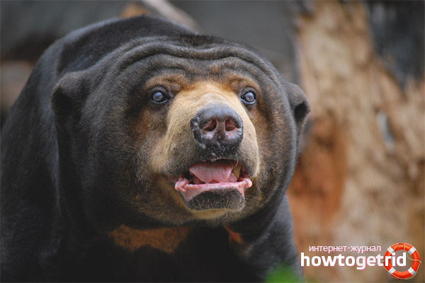 - Malgré leurs dimensions miniatures, ces animaux se distinguent par un haut niveau d'intelligence. Ils sont plus intelligents qu'auto-similaires, peuvent prendre des décisions dans des situations difficiles. Sinon, les membres de la famille sont appelés Biruangs. Si nous comparons les caractéristiques globales des ours moyens, ils sont similaires aux chiens de grande taille. De plus, les ours sont attachés à une chaîne lorsqu'ils sont gardés en captivité, tout comme les chiens.