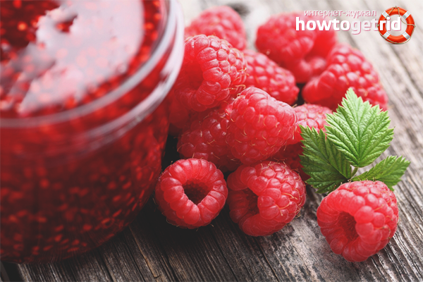 La propriété la plus connue de la confiture de framboise est un effet antipyrétique, basé sur une transpiration accrue. Il est obtenu en raison de la présence dans les baies de substances similaires en action à l'aspirine. Et surtout, le corps ne reçoit aucun effet secondaire après cela, comme si des médicaments chimiques étaient utilisés.