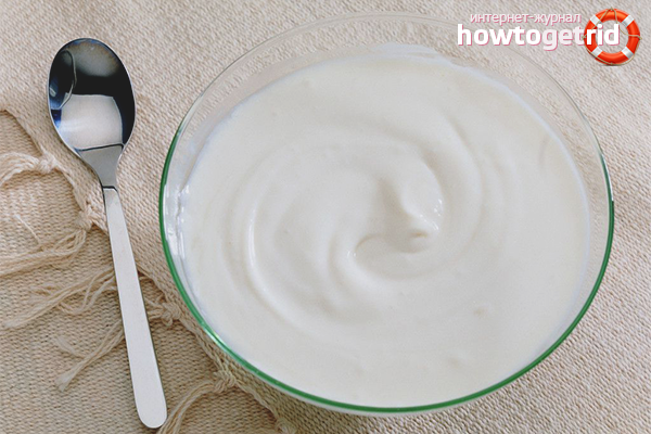 - Le masque est préparé à partir de deux produits laitiers fermentés sans mélange avec d'autres composants. Si désiré, de la gélatine est ajoutée, elle donne à la composition une densité.