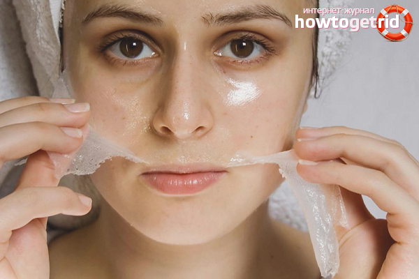 - Le masque de gélatine doit être retiré sous forme de film ou enroulé la composition sur les bords. De plus, le produit peut être lavé à l'eau tiède. Les restes du masque ne doivent pas être arrachés, sinon vous pourriez endommager la peau délicate.