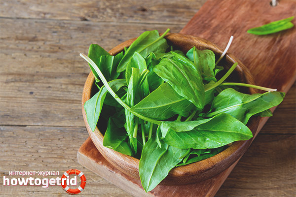 - N'oubliez pas que tous les micro-organismes présents sur les feuilles pénètrent dans la peau si l'oseille n'a pas été traitée auparavant. À cet effet, il est bien lavé et n'est versé qu'une fois avec de l'eau bouillante. Donc, vous tuez les bactéries, enregistrez la valeur.
