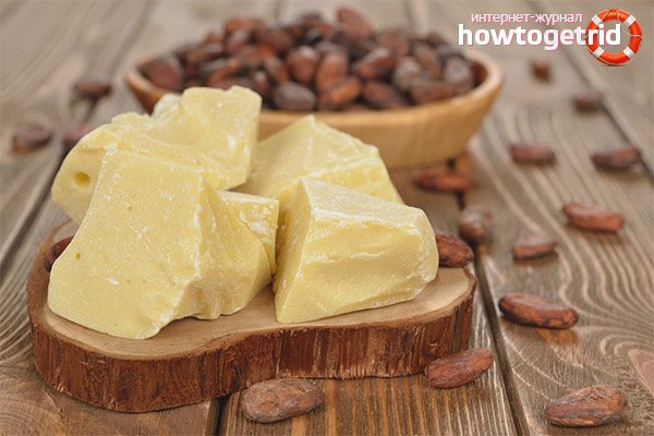 - Le beurre de cacao résiste à l'inflammation de la peau altérée ou gelée. Il est nécessaire de lubrifier les zones touchées pour éliminer l'inconfort.