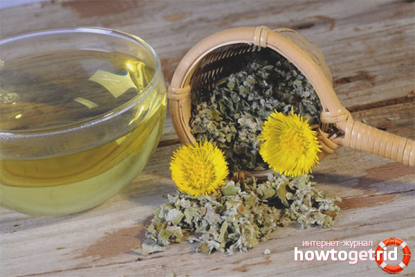 - En tant qu'expectorant fort en médecine populaire, les infusions faites à partir des feuilles de cette herbe sont activement utilisées. Pour préparer une telle infusion, vous devez infuser les feuilles de tussilage, en versant une cuillère à soupe de cette herbe avec 250 millilitres d'eau bouillante.La perfusion résultante doit être défendue pendant 20 minutes, puis filtrer soigneusement, en utilisant de la gaze ou un tamis fin pour cela. Il est recommandé de prendre une telle teinture pas plus de 4 fois en 24 heures.