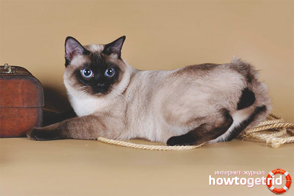 Des représentants de cette race ont été utilisés comme gardiens de vases dans d'anciens temples - sur le territoire du continent sud-est asiatique. Les chats étaient assis à côté du vase, et avec leur queue encerclaient cet objet, ce qui a conduit à sa courbure. Et du fait que les animaux regardaient de près, afin d'éviter le vol d'un vase, ses yeux se sont finalement inclinés.