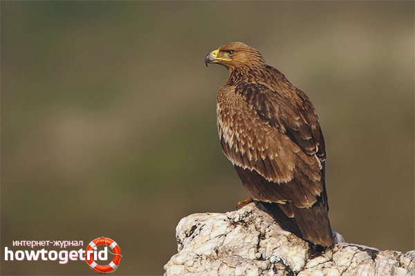 - Si nous comparons les lieux de sépulture avec d'autres représentants de la sous-espèce aigle, ces individus ne sont pas très mobiles. Pour cette raison, les lieux de sépulture n'essaient pas de suivre une proie rapide, choisissant une nourriture plus abordable. Le menu principal de ces oiseaux se compose principalement de rongeurs, d'écureuils terrestres, de gerboises, de marmottes, de lièvres ou de petits oiseaux.