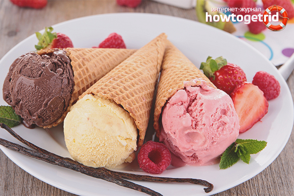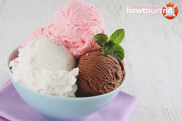 - Des études ont montré que la délicatesse mangée n'est pratiquement pas absorbée par le corps. Par conséquent, la crème glacée appartient à la catégorie des produits lourds. Le fractionnement de la composition ne se produit qu'après son réchauffement complet dans l'estomac. Afin de ne pas rencontrer de complications, une gâterie ne doit pas être consommée plus de 3 fois par semaine.