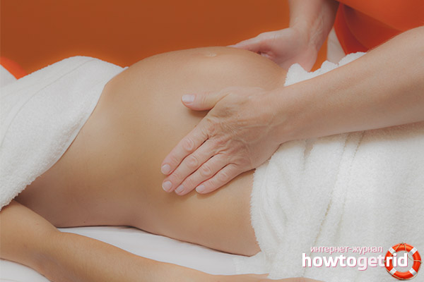 À des dates ultérieures, la femme enceinte peut s'allonger sur le côté ou s'asseoir. Le massage commence toujours par de légers mouvements. En aucun cas, vous ne devez utiliser une exposition intense, surtout si le massothérapeute est mal informé sur le placement des centres nerveux actifs sur le corps humain.